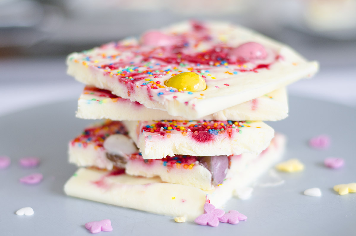 I’ve been thinking about making yoghurt bark for a while now. And I thought, what better time than Easter to give it a whirl. We try not to overdo the chocolate on Easter, but at the same time I do like to spoil my children with a little choco surprise. This is where the idea of Easter yoghurt bark came about.