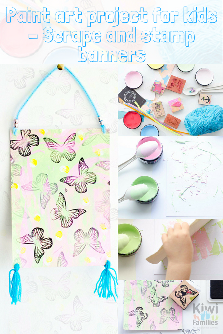 Paint art project for kids – Scrape and stamp banners