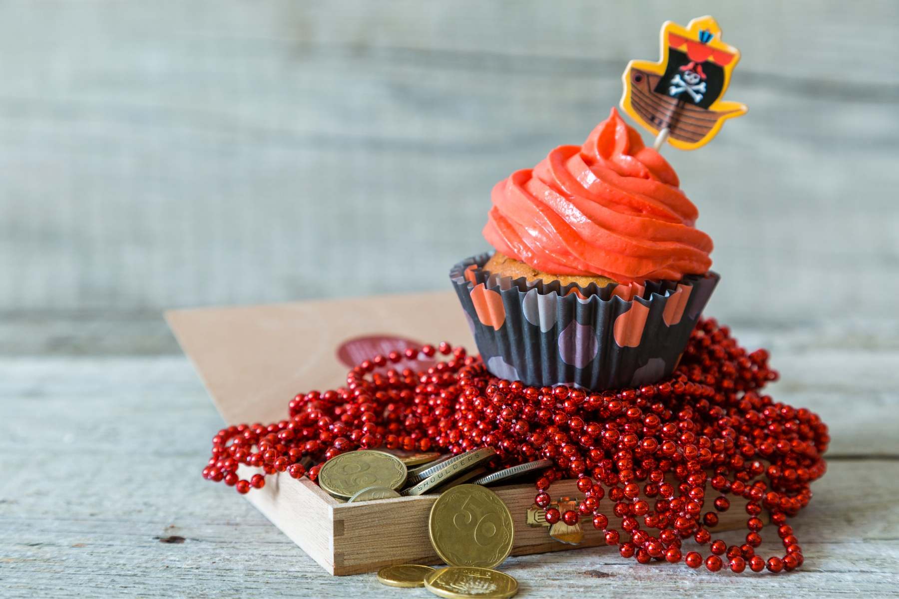 • Buy pre-made brandy baskets (like brandy snaps but in a basket shape) from the supermarket and fill them with pirate’s treasure. You could use gold coins, candy watches, and mini Crunchie bars.