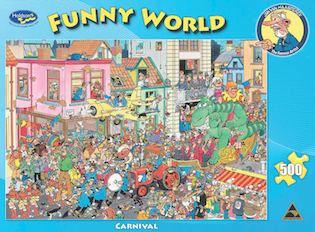 Transport yourself into a world of laughter and comical situations with Holdson’s Funny World 500 piece puzzle collection by artist Jan Van Haasteren.