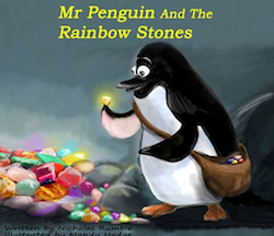 For me, the highlight of these books is Rumble’s lovely nature photography. For example, Kim the Greedy Kingfisher contains a great selection of images of native New Zealand birds and landscapes and my children very much enjoyed looking at these. Similarly, Sam’s First Swim contains some great images of seals at Kaikoura. I also enjoyed Mandy Hodge’s images in Mr Penguin and the Rainbow Stones and there was a nice fairy tale quality to this story.
