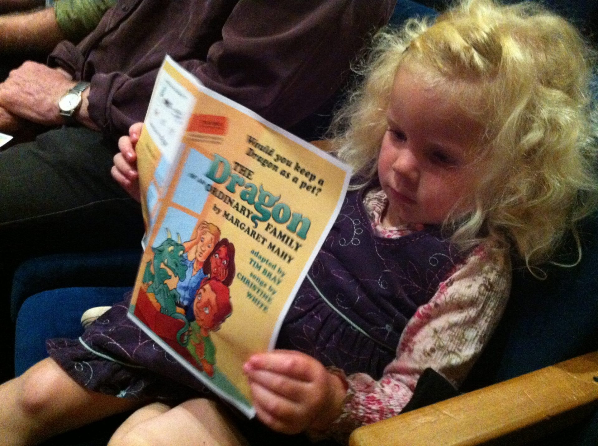 The show moved along at a perfect pace to keep my 3yo highness entertained for the whole show – quite an achievement. (We’d gone to a movie earlier in the week which hadn’t achieved this!). The amazing stage effects had her in awe as well – especially the puppet sized dragon suddenly springing to life by itself and the look on her face when the enormous dragon appeared towards the end was priceless.